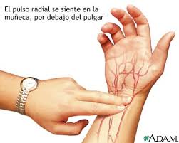 A)coloca el dedo indice y el dedo medio en tu mano derecha sobre la parte inferior de la muñeca de tu mano izquierda.